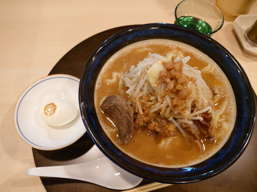 乳化したスープを飲んでみると、味が濃く、とにかくパンチという感じ。元々麺が美味しそうという理由で気になっていたお店のため期待して麺をすすると、コシのある極太麺でこれはかなり好み。通常量を頼んだはずが、お店の方の手違いで肉増しのラーメンが運ばれてしまい、残すわけにいかず完食。もう食えないと思いながら満腹でお店から退散。