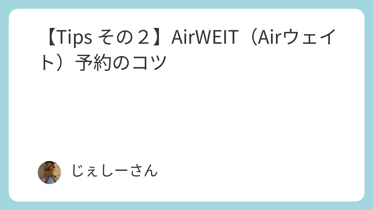 予約のコツの第二弾はAirWEIT(Airウェイト)の予約のコツについてまとめたいと思います。今回ご紹介する方法で私は実践しており、超人気店でも受付番号1で取得したことも多数あります。是非参考にしてみてください。