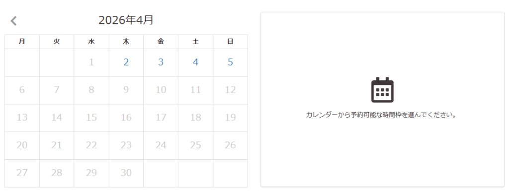 ③-4.予約日を選択すると、右側の欄に予約可能時間が表示されるので、予約する日時を選択します。